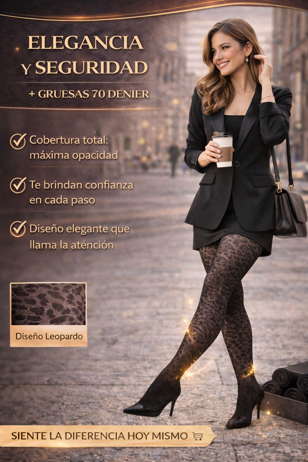 Beneficios Clave – Panty Negra 70 Denier con Diseño de Leopardo INGESA