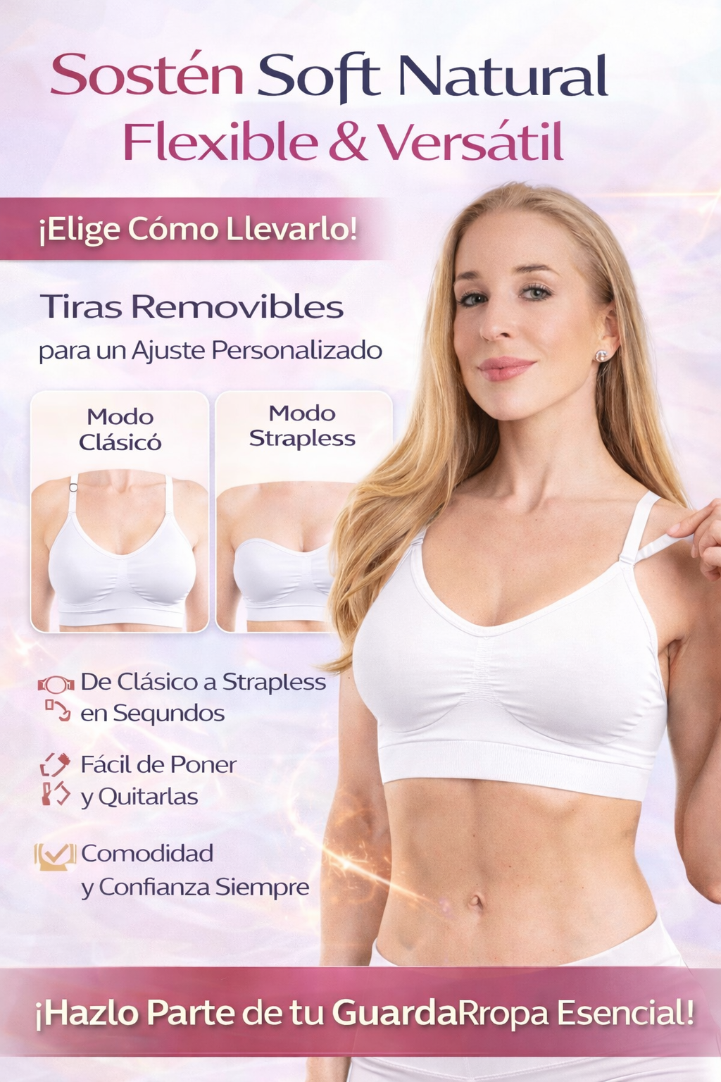 Sostén Peto Soft con Tiras Removibles – Cobertura Natural, Soporte Anatómico y Versatilidad Diaria